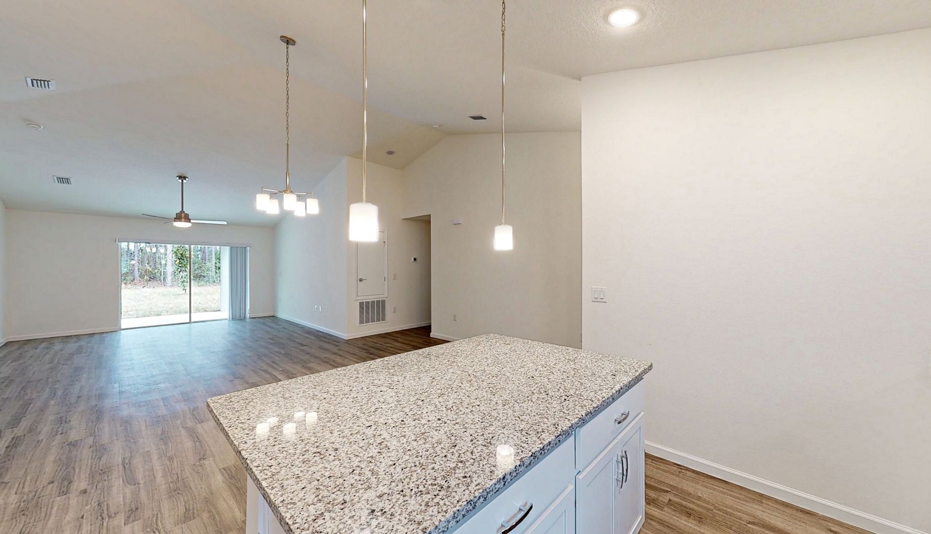 Welcome to this beautiful modern 3/2 home located in Palm Coast, FL. This home boasts three spacious bedrooms and two full bathrooms, including a primary bathroom with a double vanity. The open floor plan is perfect for entertaining and easy living, offering plenty of space to move around. The kitchen is a chef's dream, equipped with stainless steel appliances and solid surface countertops that are both stylish and durable. The luxury vinyl plank flooring throughout the home adds a touch of elegance and is easy to maintain. Plus, this home is pet-friendly, so your furry friends are more than welcome. Experience the perfect blend of comfort and modern living in this Palm Coast gem.